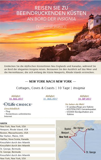 10 Tage ab/bis New York an Bord der Oceania Insignia.