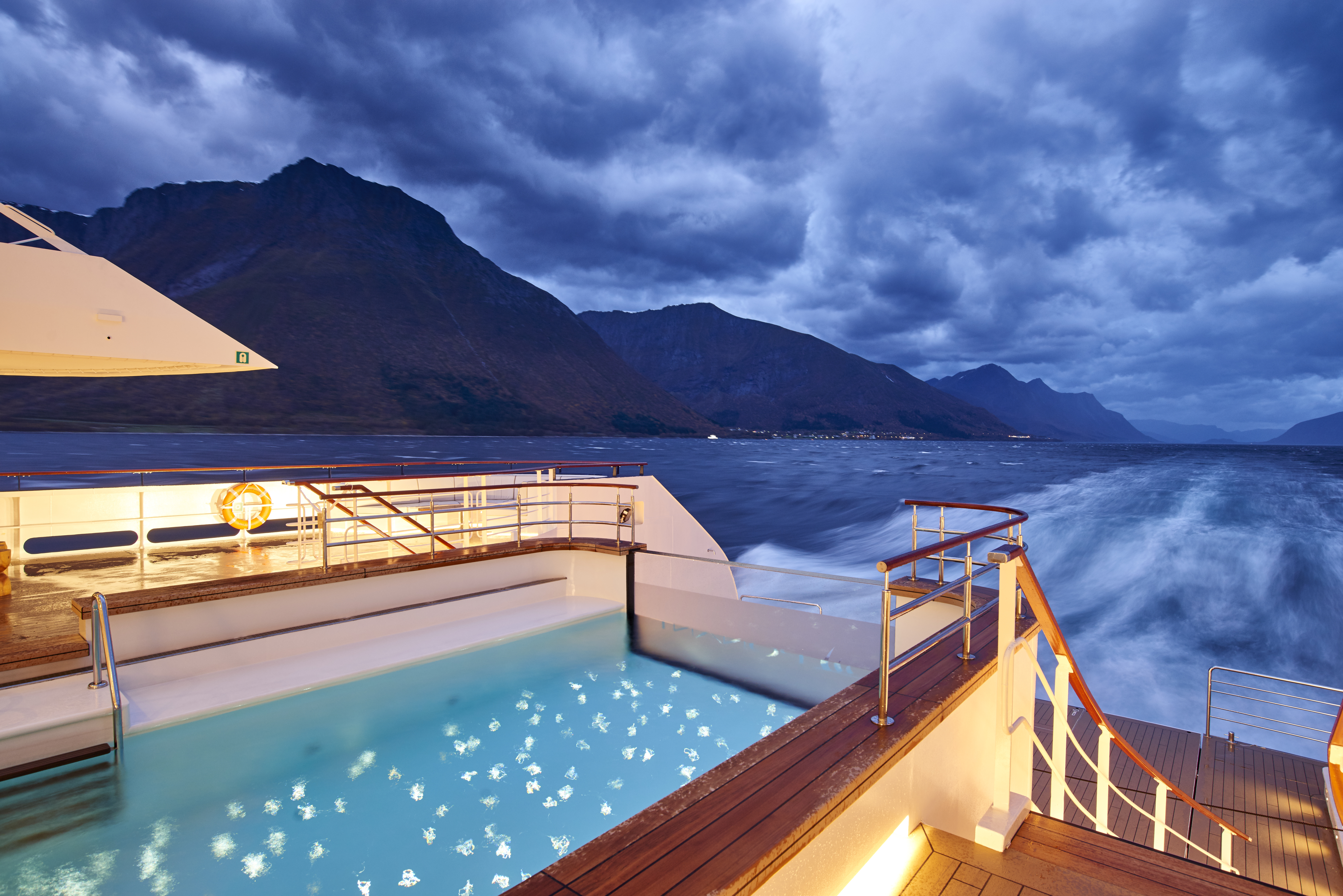 Das moderne Schiff besticht nicht nur durch seine schnittigen Linien, sondern ist auch mit innovativen und umweltfreundlichen Technologien ausgestattet.